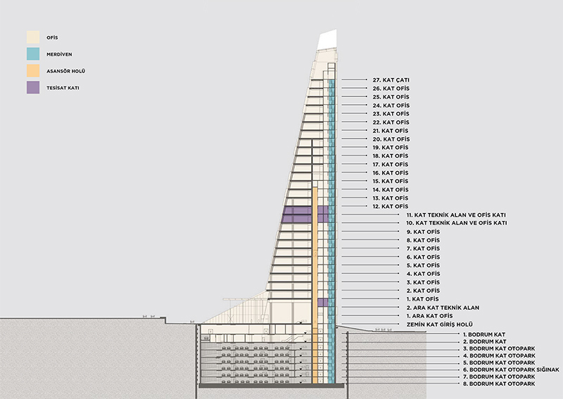 | ELEVATORS | According to the number of floors of the office building serving the project and technical features staff elevators, 1 service and firefighter elevators ; the appropriate number of projects and specifications parking with elevator will be installed . EMS can be monitored from the control room Elevator( Elevator menagement System) that will be established. Security cameras in cabins and facilities will be announced. |